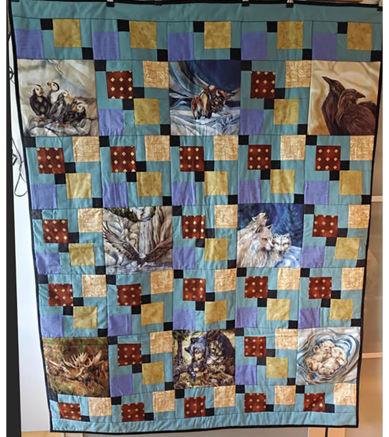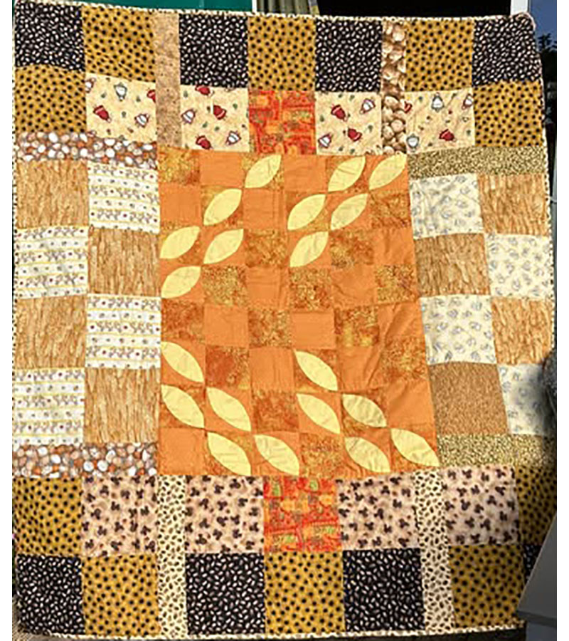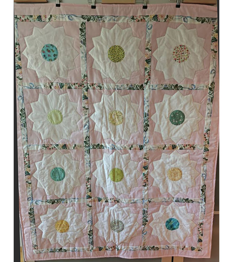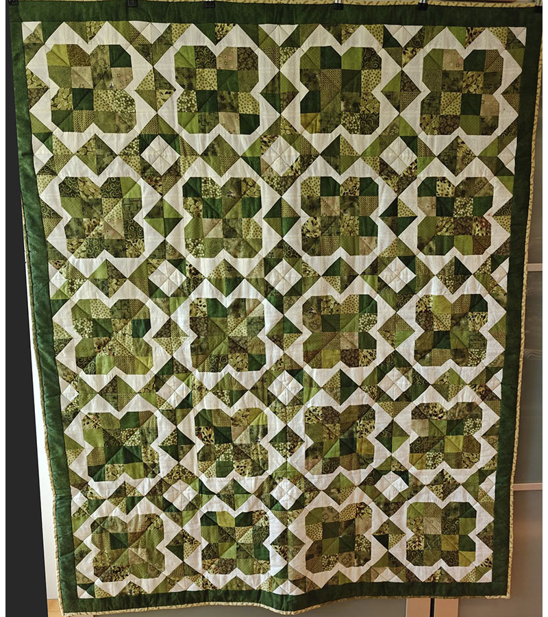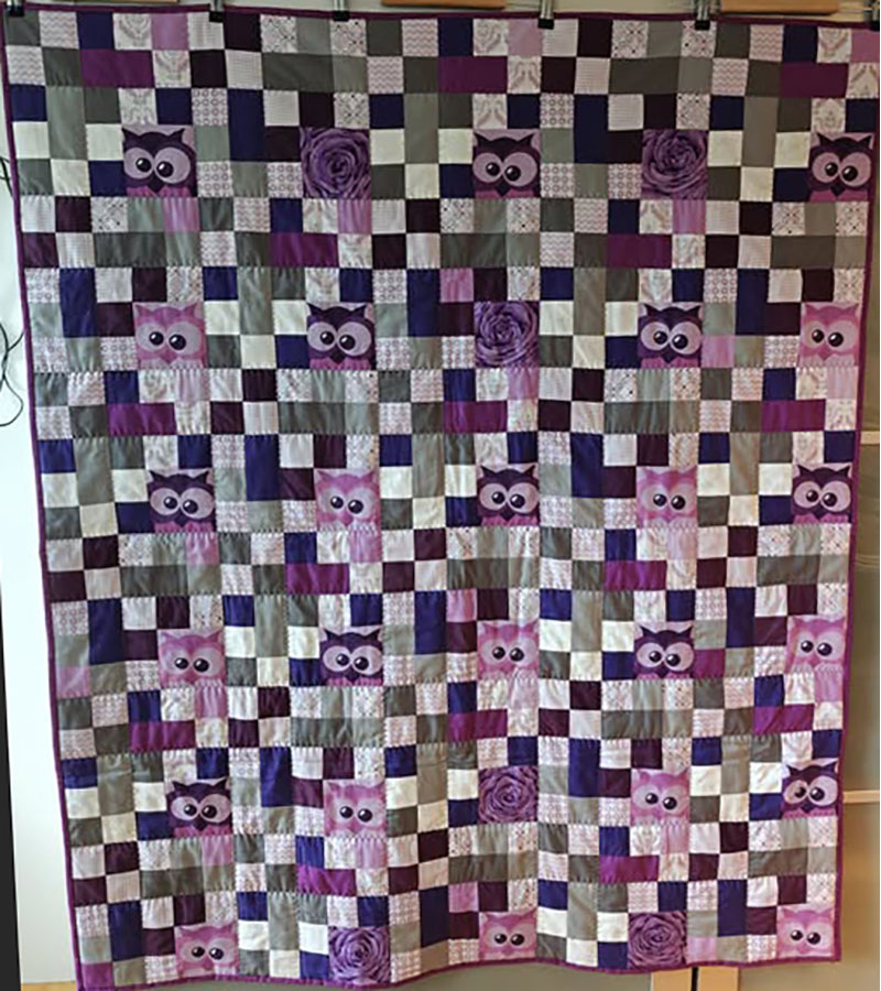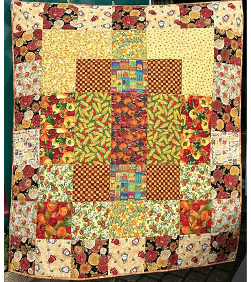 Anne Marie Mouritzen, Harring , har syet dette fine tæppe. Mønster er “Præstø” fra HANNES patchwork. Stof fra restekassen skriver Anne Marie.
