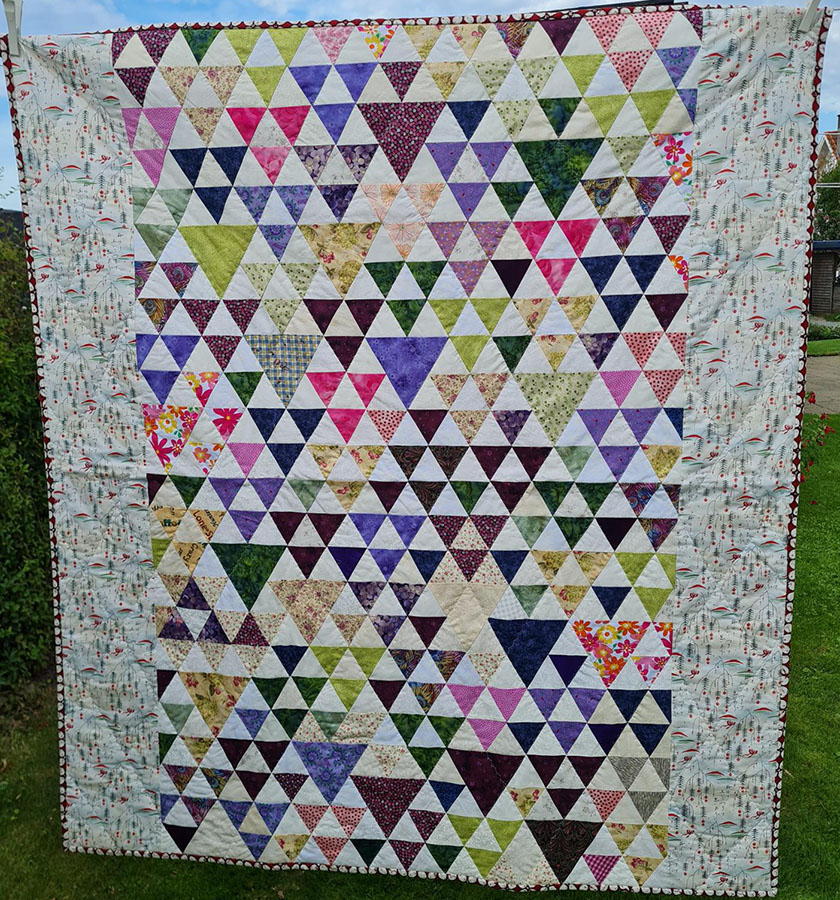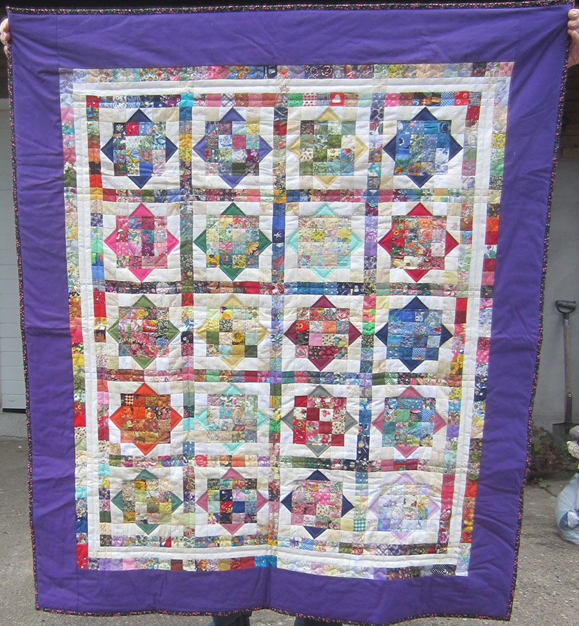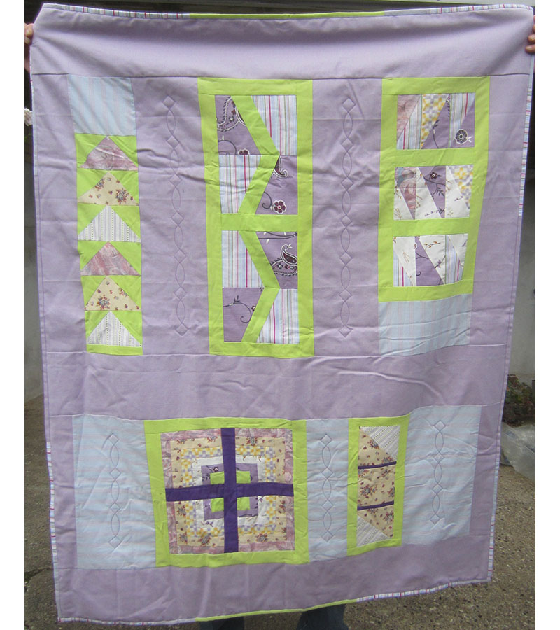 Lena Andersen har syet det smukke puttetæppe i lilla farver. Mellemfor er finansieret ved bogsalg, og bagsiden er doneret af anonym. Mette Ebbesen, Tved, har monteret og quiltet.