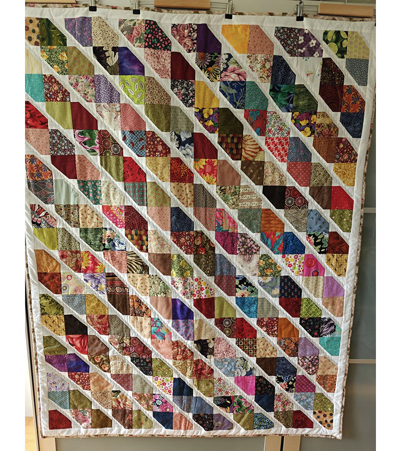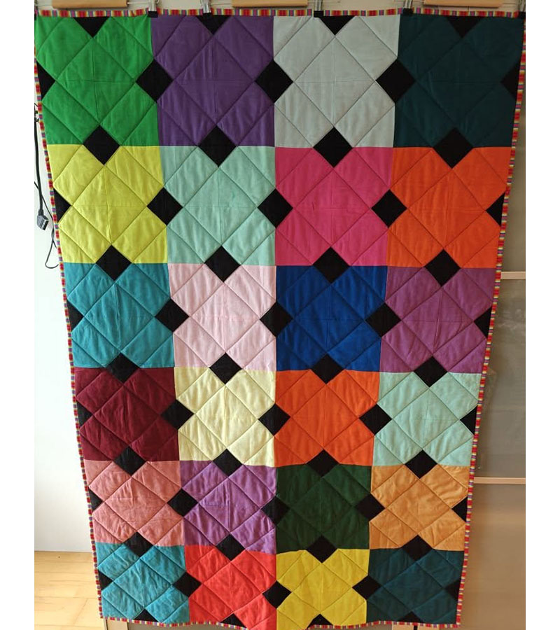 Kraftige farver 11. oktober 2025 Af projektputte Dette farvestrålende tæppe er syet af Anne Marie Mouritzen, Harring. Syet af stof samlet på træf.