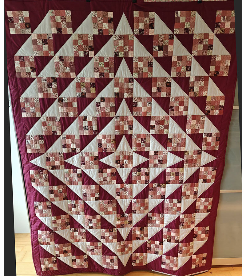 Rødbrunt og blåt Jubilæumstæppe 23. oktober 2025 Af projektputte Dette fine tæppe er syet af Minna Skriver Bach.