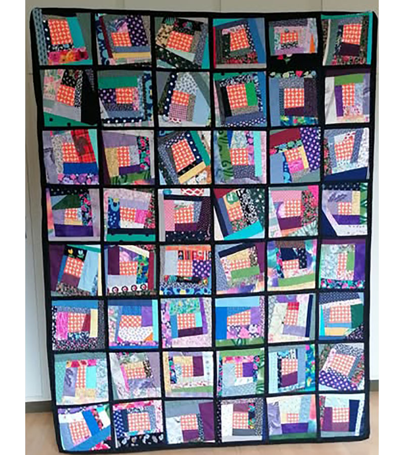Emma Christoffersen, Thisted har syet dette fine restetæppe af strimler.