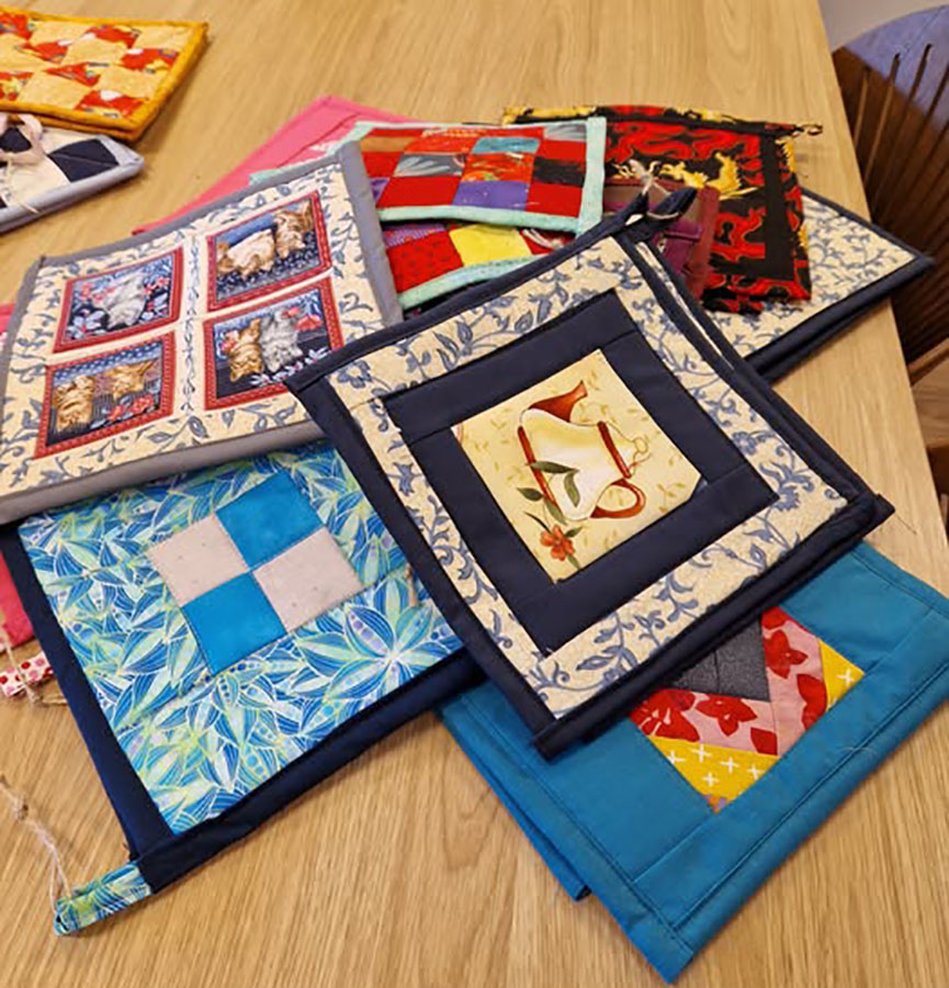 12 flotte par grydelapper fra Jette Stilling Jørgensen. Via forskellige chauffører indleveret til vores stand på Maribo Craft Days . Vi er her hele ugen og byen er fuld af gode udstillinger og aktiviteter.