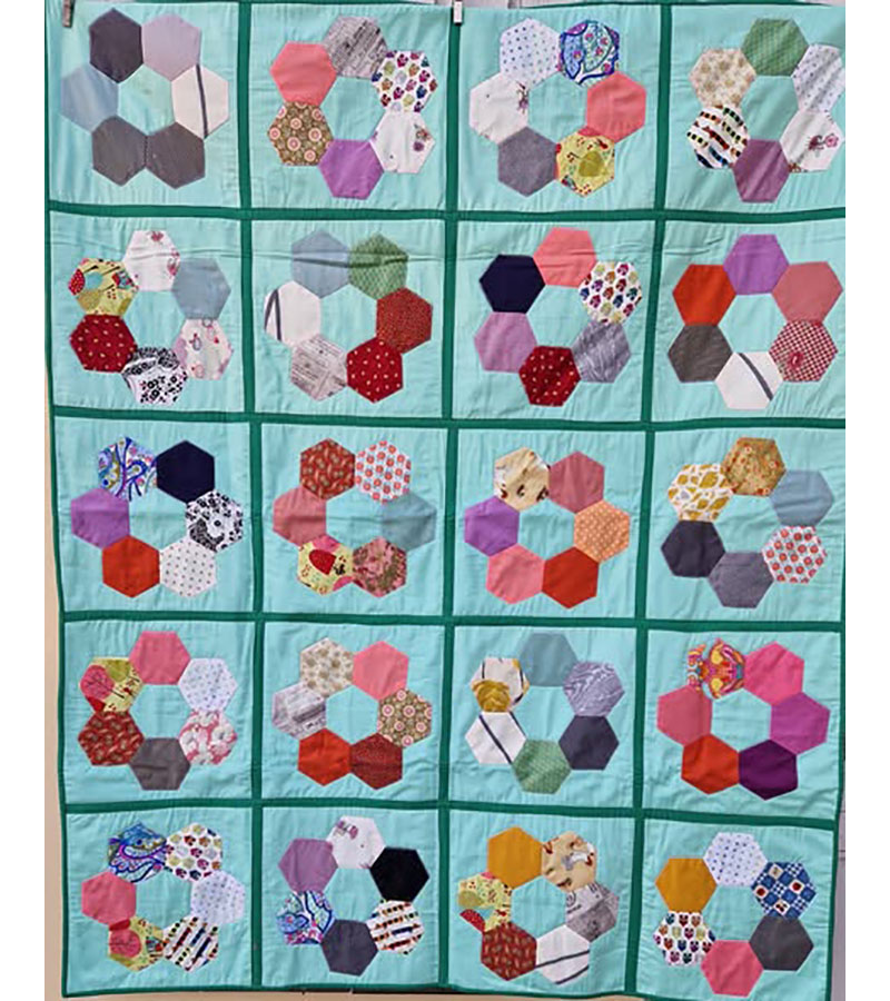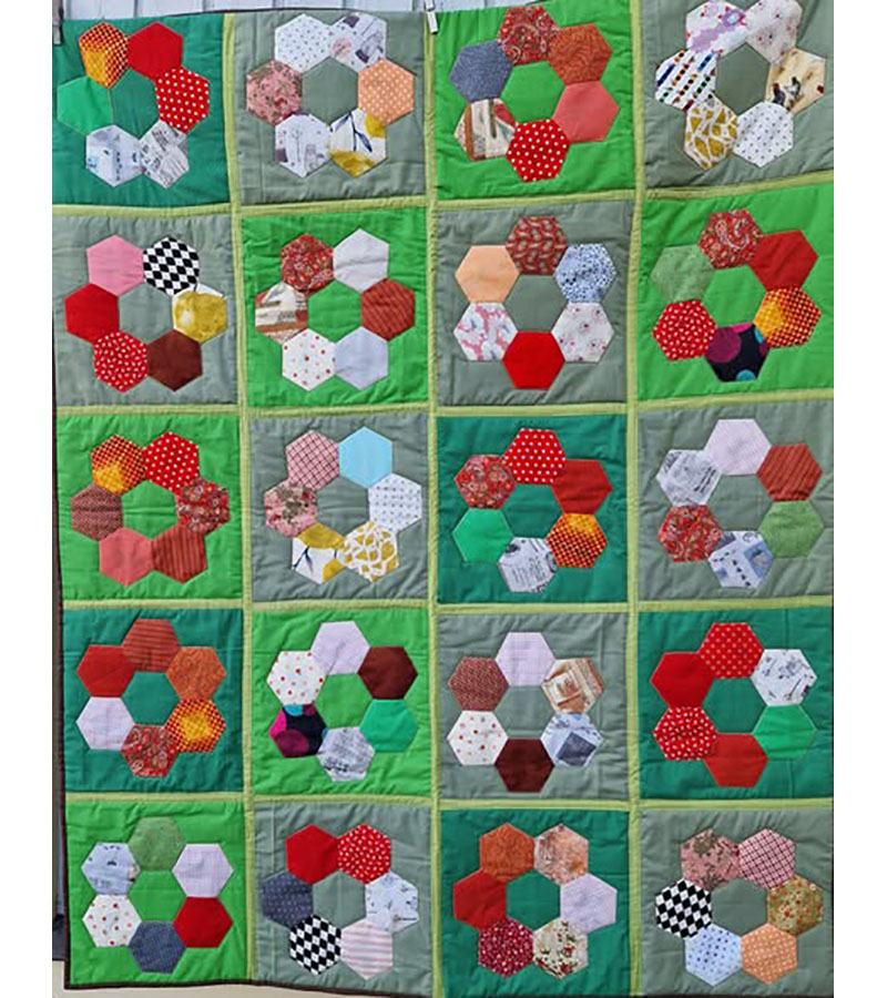 2 x blomster 1. november 2025 Af projektputte Lene Sørensen, Sakskøbing, har syet 2 puttetæpper med blomsterkranse applikeret på baggrundsstof. Tæpperne er samlet med quilt as you go metoden. Mellemfor er finansieret af bogsalg.