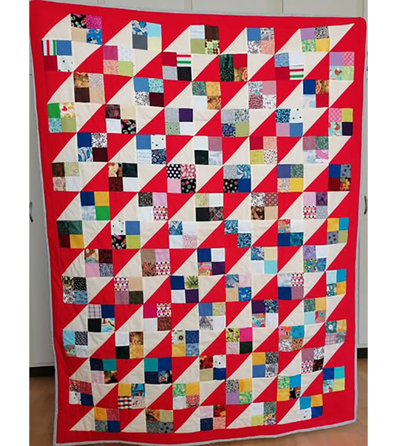 Flot rødt tæppe 1. november 2025 Af projektputte Anna Mikkelsen. Skanderborg har syet dette fine tæppe i flot sammensatte røde stoffer.