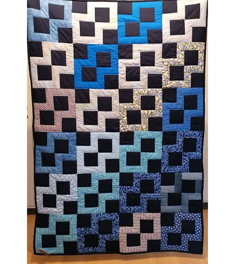 Blå både for og bag 4. november 2025 Af projektputte Kirsten Hjorth Andersen, Horsens har syet dette fine tæppe i blå farver og blå fleece på bagsiden.