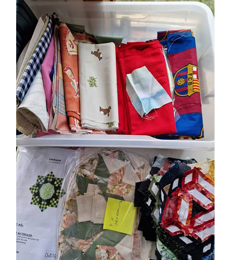 Boet efter Lone Sennelhaack (tidl. Formand for Kalundborg Quilterne) en sækfuld stoffer