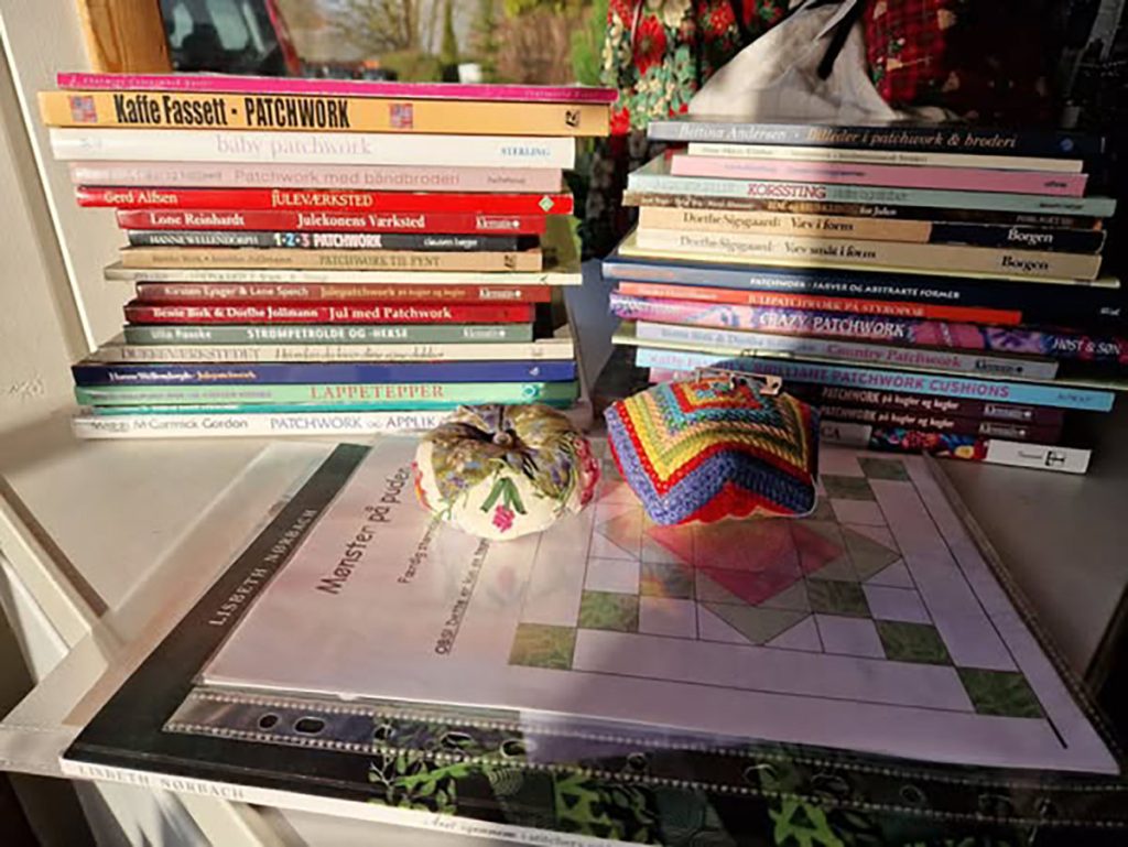 Vi har modtaget 2 dejlige donationer: Lykke Nielsen, Vordingborg, har doneret linealer indlægsstoffer og godt bomuldsstof, samt en lilla top, der nu bliver quiltet af Bente Gaard. Boet efter Birthe Cygan, Nykøbing F, har tømt syværelset for mange bøger, mønstre, papper med stof og en masse godt sytilbehør, bla lynlåse og bøjler til “sypigens skraldespand “. Der var desuden en stor kasse hobby ting, der sendes direkte videre til Julemærkehjemmenes krea-værksteder. Vi takker for de dejlige gaver!