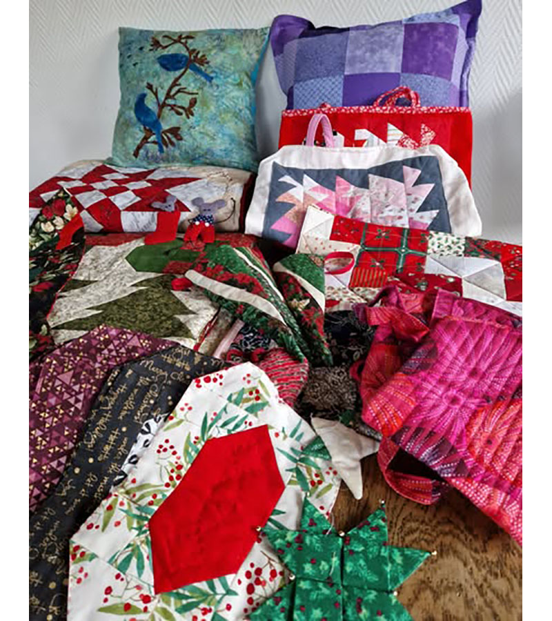 Susanne Triel, Esbjerg, skriver:”Bagsiderne, bortset fra billede 1, er doneret af Helle Patchwork-Oasen i Skjern, og mellemfor af Ringkøbing Skjern Landbobank og Helle.