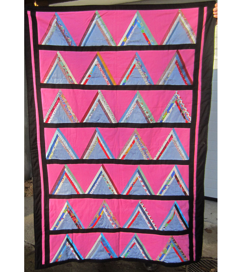 Anette K. Laursen har syet restetæppe syet efter mønsteret “Scrappy, Strippy Chevron” fra Stitched By Susan.