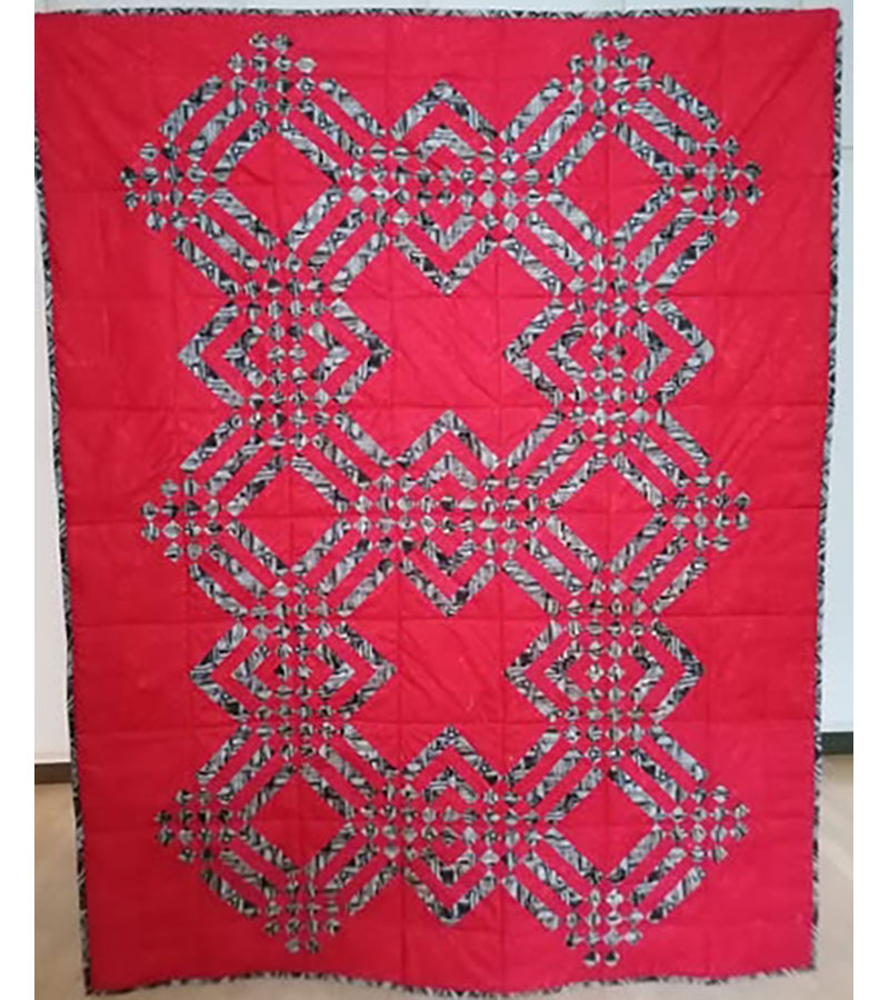 Toppen er syet af afdøde Helle Tolborg, Aars. Ann Christiansen, KvintaQuilts.dk, har doneret bagside og long arm quiltet tæppet.