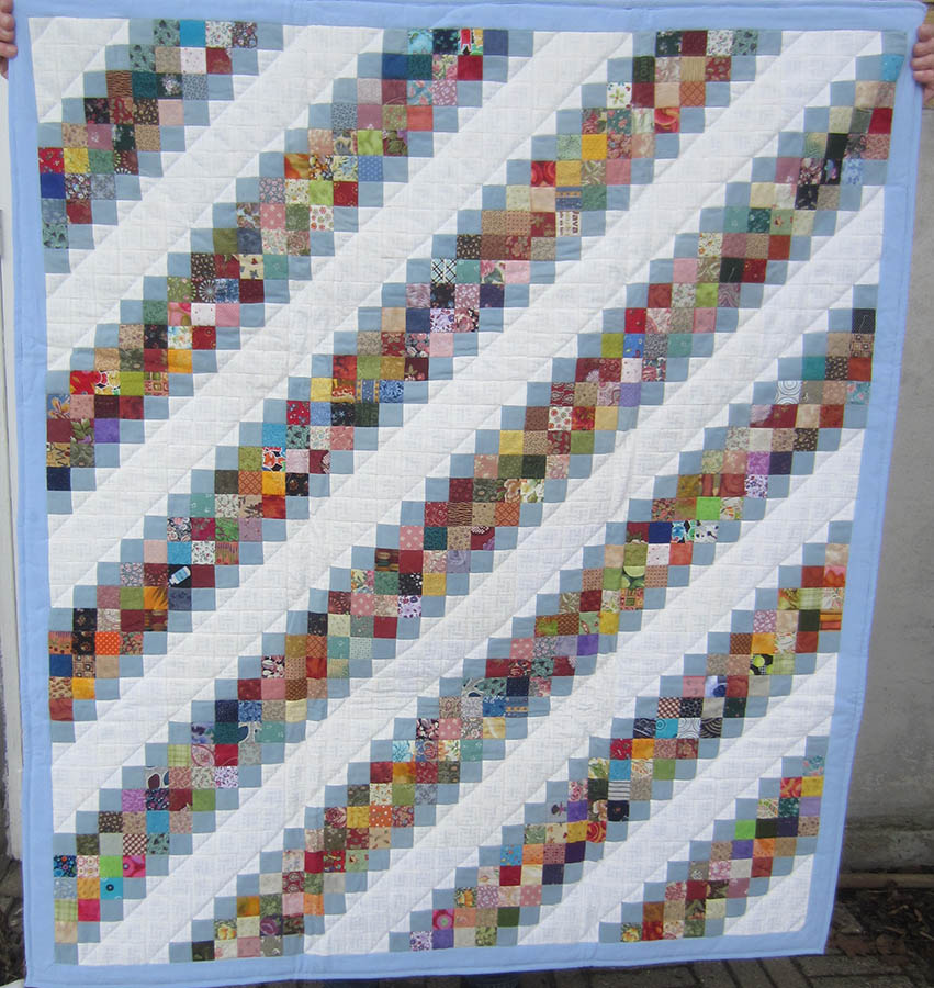 Ane-Marie Ridder, Køge har syet dette fine tæppe, forside stof doneret af Birthe Meng Glador. Syet efter mønster: Jeanneke.com “Frederihe “.