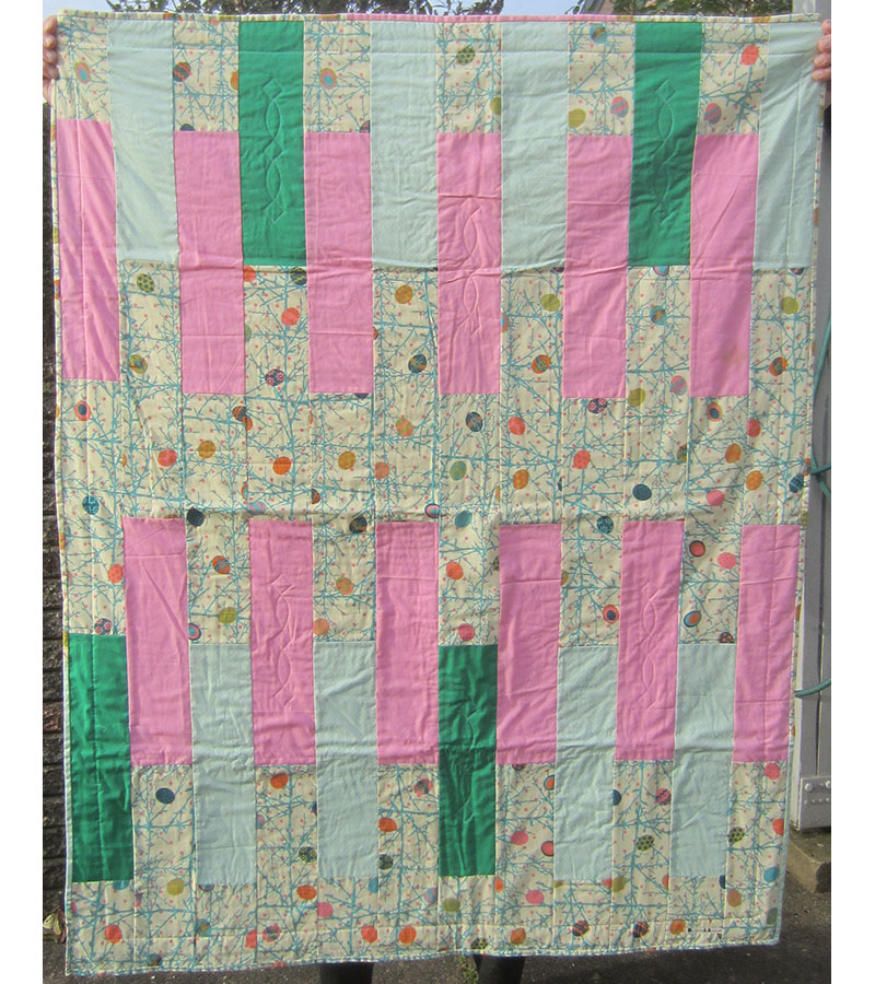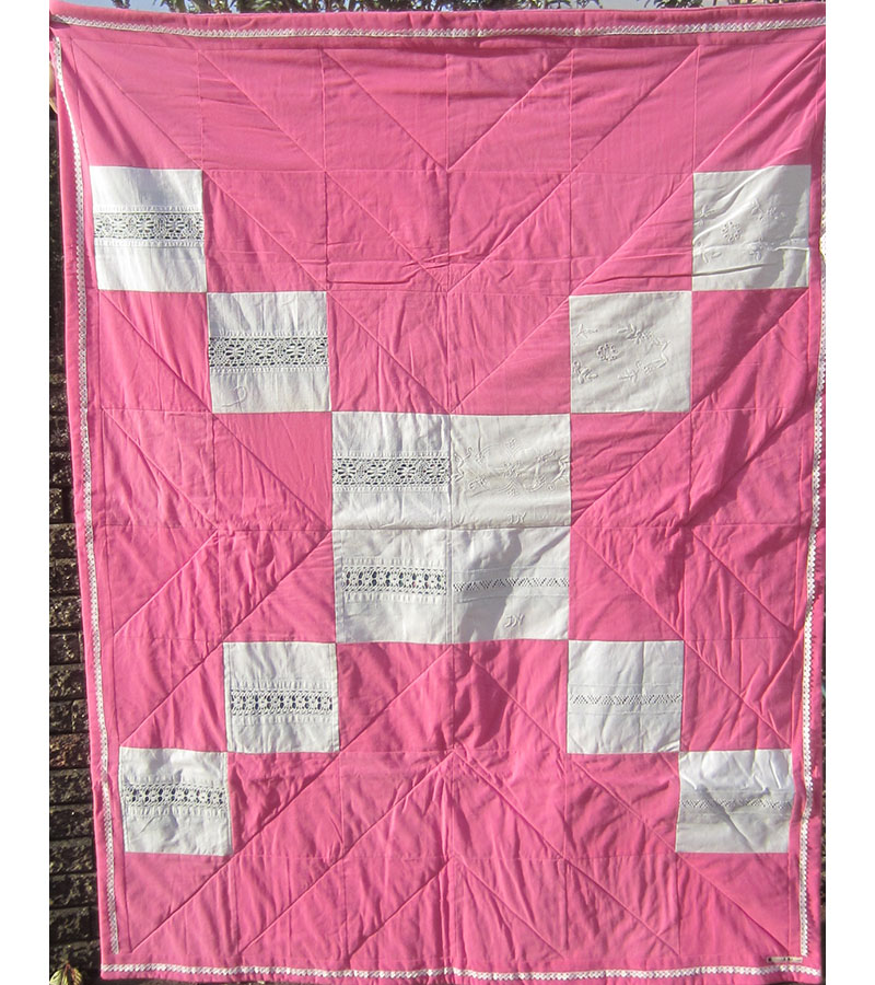 Tæppe med mellemværk 21. november 2025 Af projektputte Mona Wacherhausen, Engesvang, har syet de 2 tæpper med lyserødt stof, det ene med gammelt mellemværk.