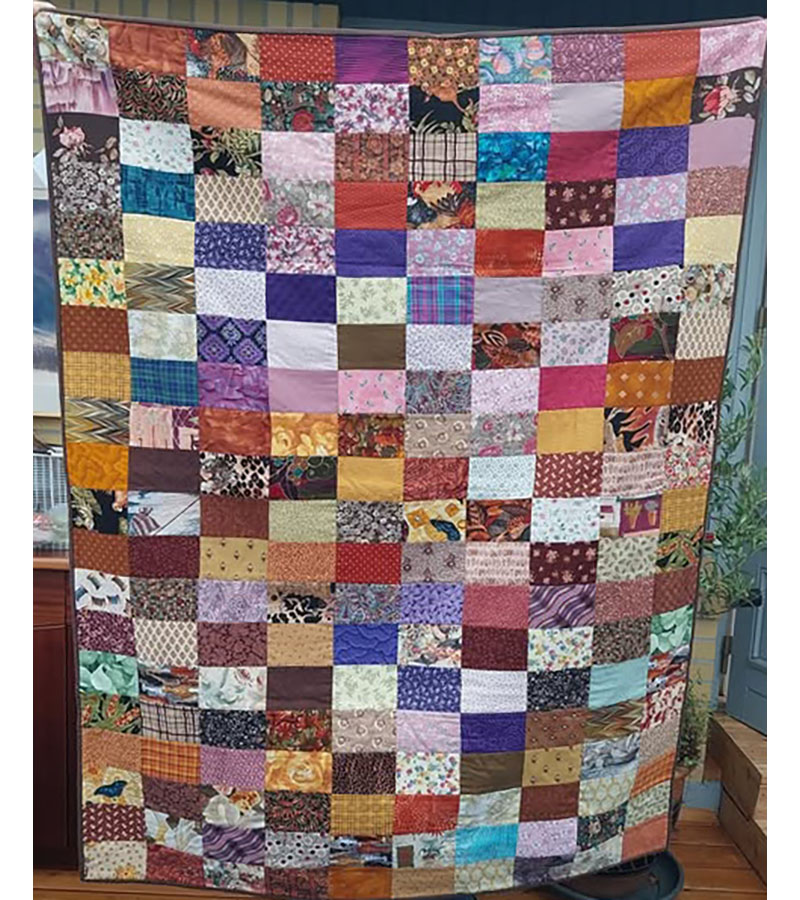 Utallige små firkanter 2. december 2025 Af projektputte Toppen er håndsyet af Estheer Bomholt, Charlottenlund, af stoffer fra Tantetræf og fra Gentoftequilterne. Tæppet er monteret af Hanne Laursen. Greve.