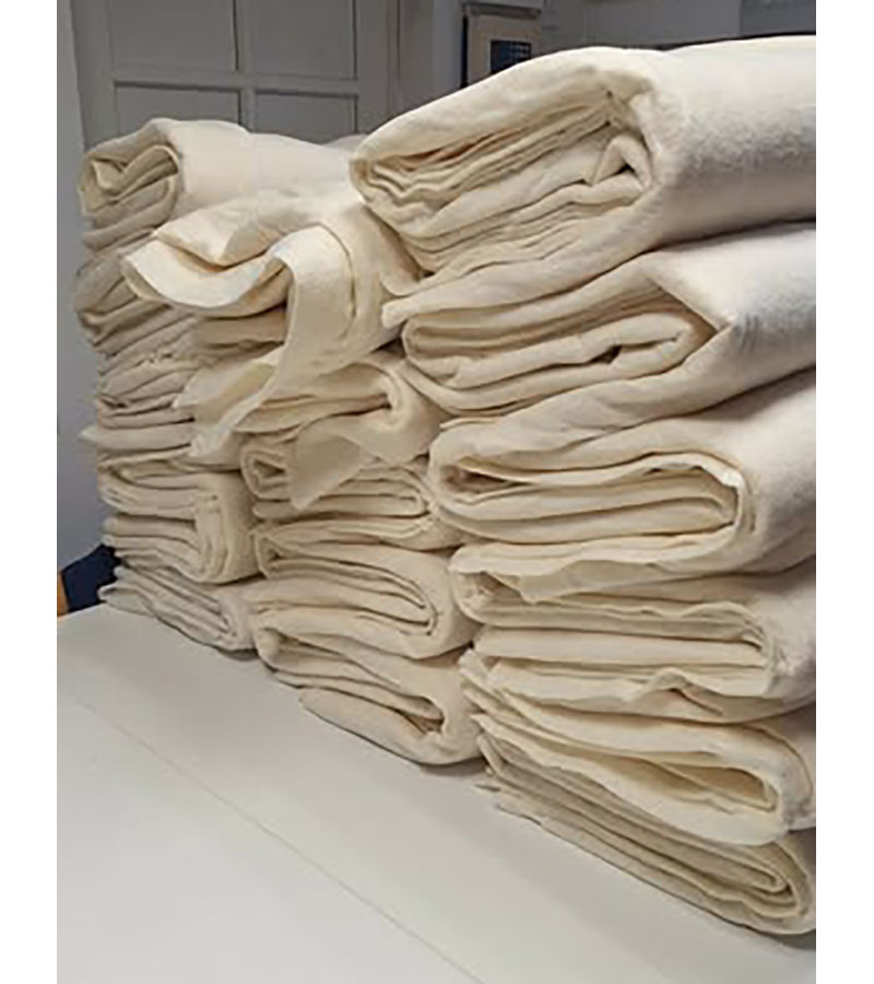 Pengene er allerede omsat til materialer købt hos Helle, Patchwork Oasen i Skjern. Helle var så flink, at hun uden beregning skar op i 2 m. stykker og der blev til i alt 34 tæpper.