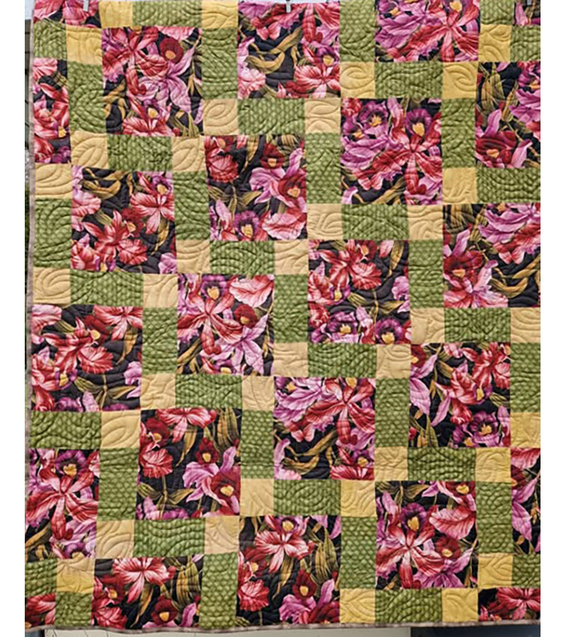 Toppen er syet af afdøde Helle Tolborg, Aars. Ann Christiansen, KvintaQuilts.dk, har doneret bagside og long arm quiltet tæppet.