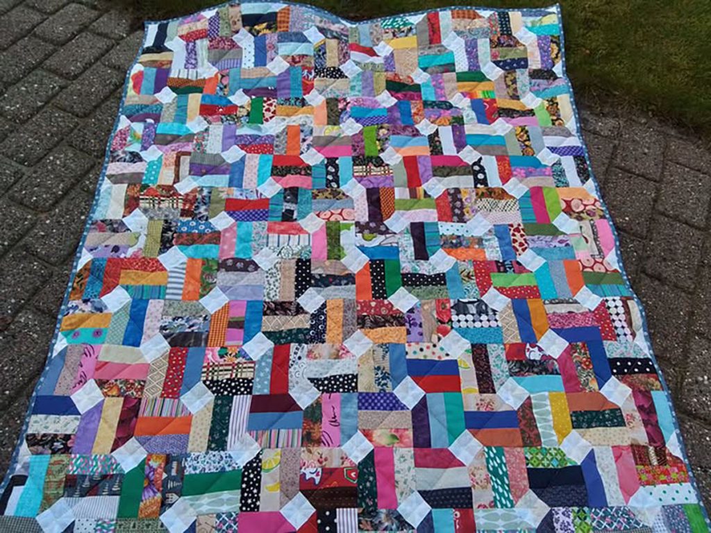 Restetæppe 22. december 2025 Af projektputte Lissy Kristensen, Hobro, har syet det brogede restetæppe.