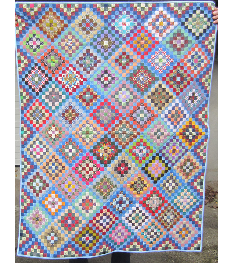Flere 2×2 cm firkanter 6. januar 2026 Af projektputte Annette Jacobsen, Støvring, har håndsyet endnu et puttetæppe med 2×2 cm firkanter, Karin Holme Frederiksen, Skørring, har monteret og quiltet. Mellemfor er financieret ved bogsalg, og bagsiden er fra boet efter Rita Nørgaard.