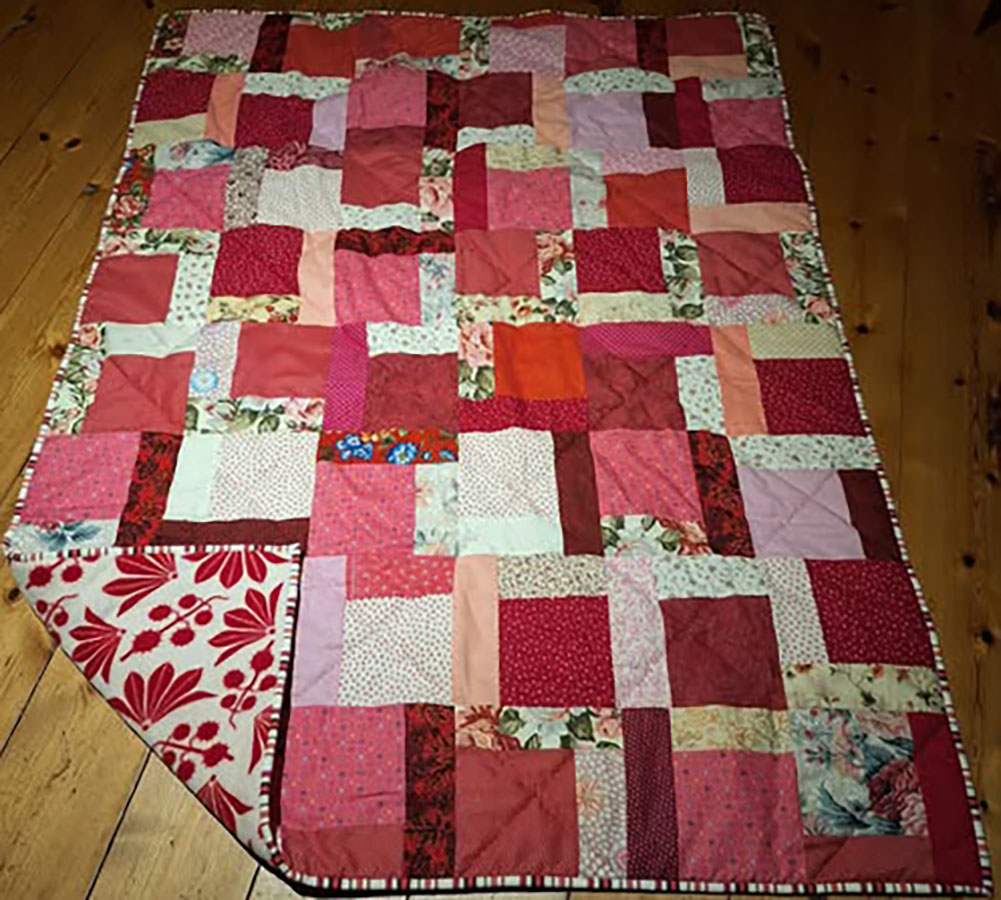 Pink og lyst 29. januar 2026 Af projektputte Bente Gaard har syet puttetæppet af donerede og egne rester. Fleece på bagsiden.