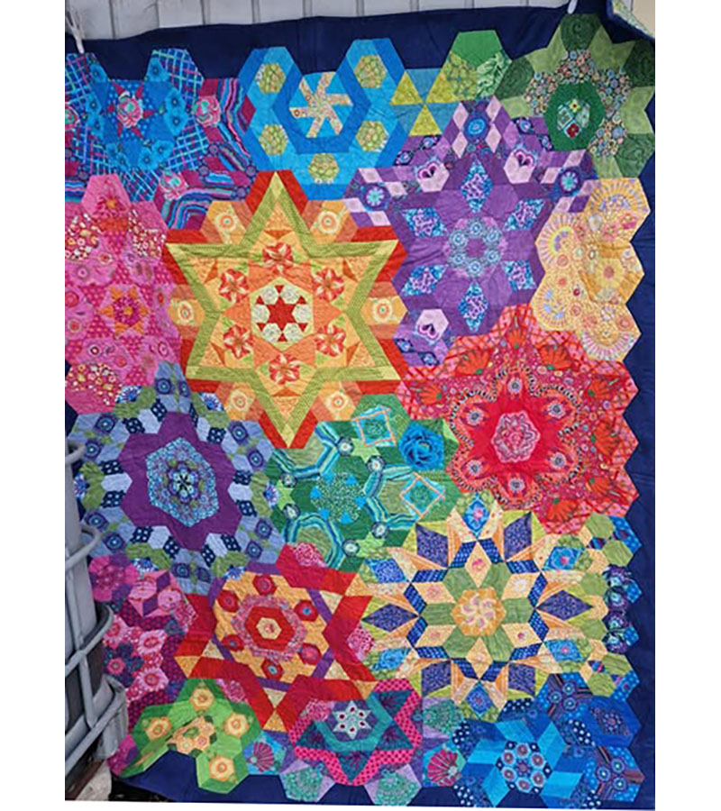 Ribe tæppe 6. februar 2026 Af projektputte Lena Andersen, Skælskør, har syet toppen, Ann-Leila Sønderby, Vordingborg, har monteret og quiltet, Patchwork Køge har doneret bagsiden Mønsteret er Ribe-tæppet fra HANNES Patchwork