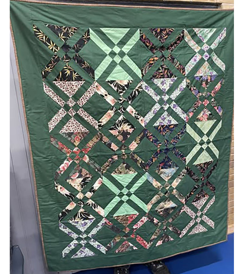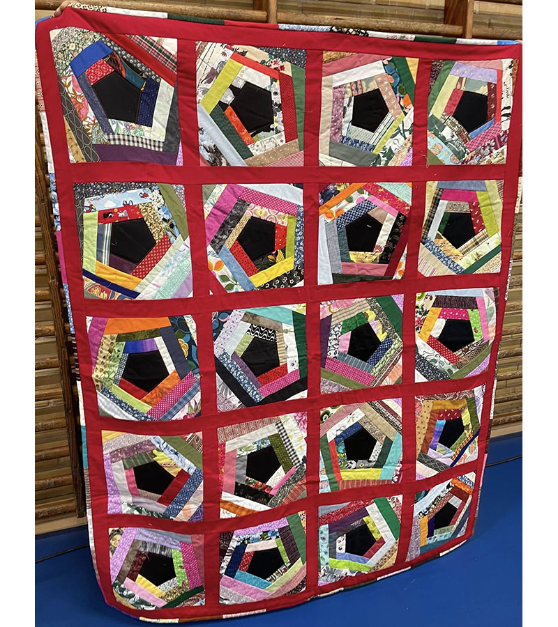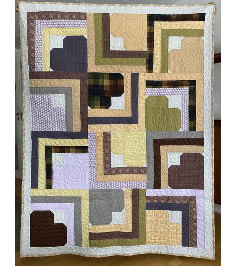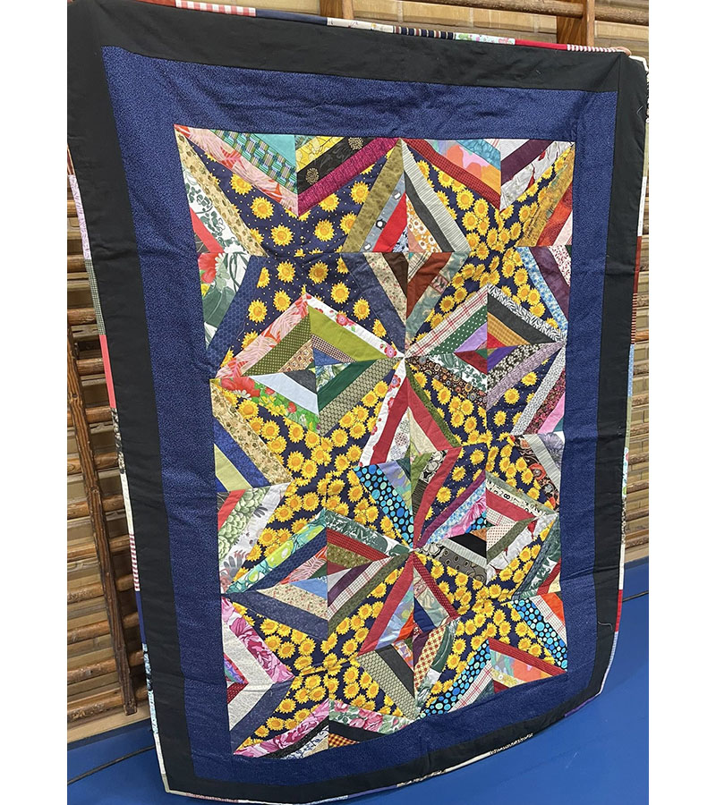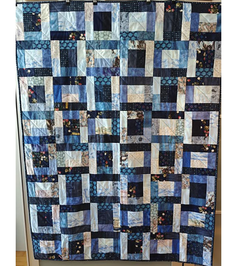 1 tæppe er blokkene syet af nogle piger til 24 Timer I Hjallerups event, mange har doneret stof rester, jeg har syet og monteret dem”.