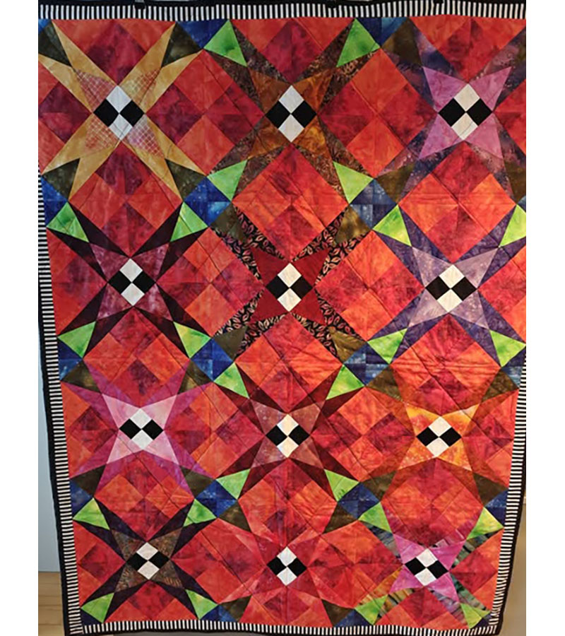Flotte faraver 26. februar 2026 Af projektputte Toppen er syet af Ingelise Pedersen. Mellemfoer fra bogsalg. Bagside doneret af Esther Borup. Monteret og quiltet af Elly Pihl.