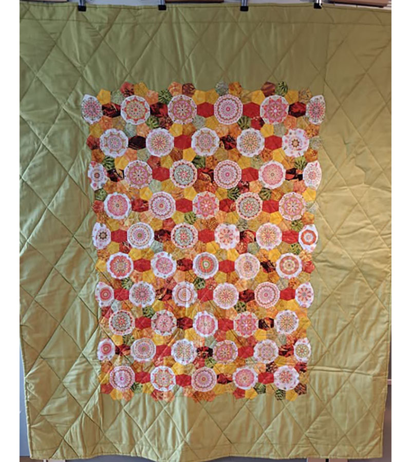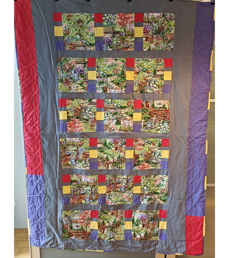 Ane-Marie Ridder, Køge har syet dette fine tæppe, forside stof doneret af Birthe Meng Glador. Syet efter mønster: Jeanneke.com “Frederihe “.
