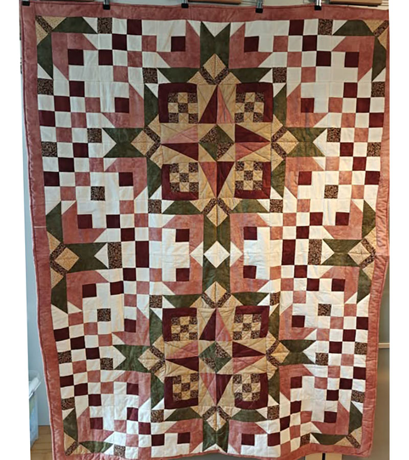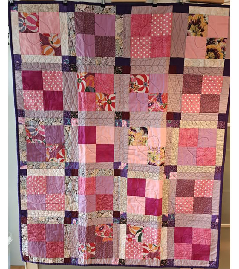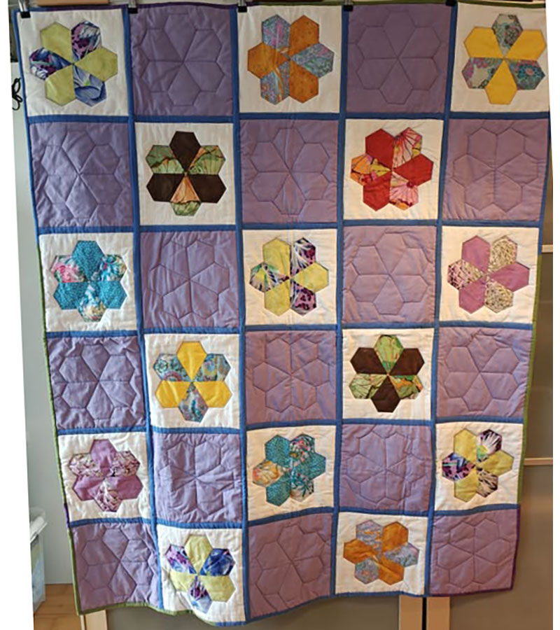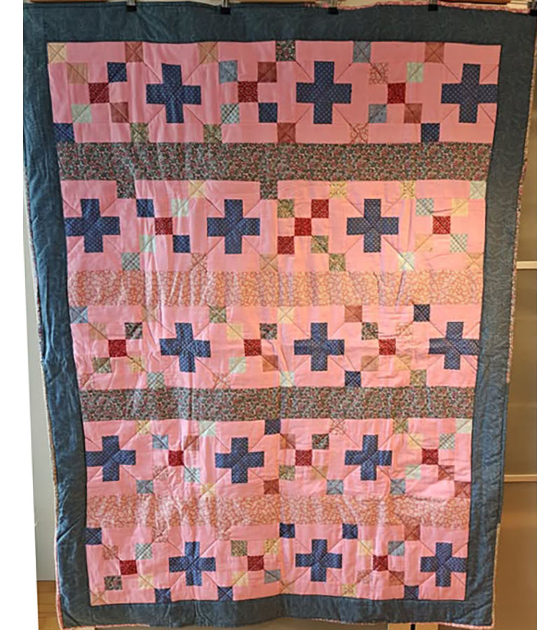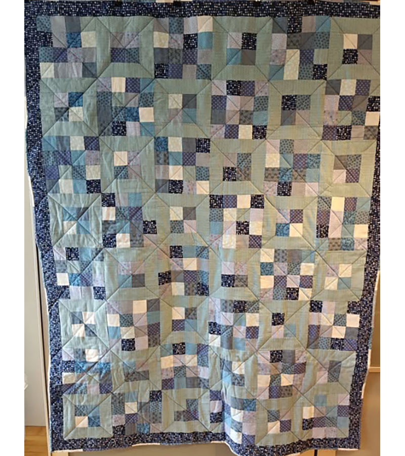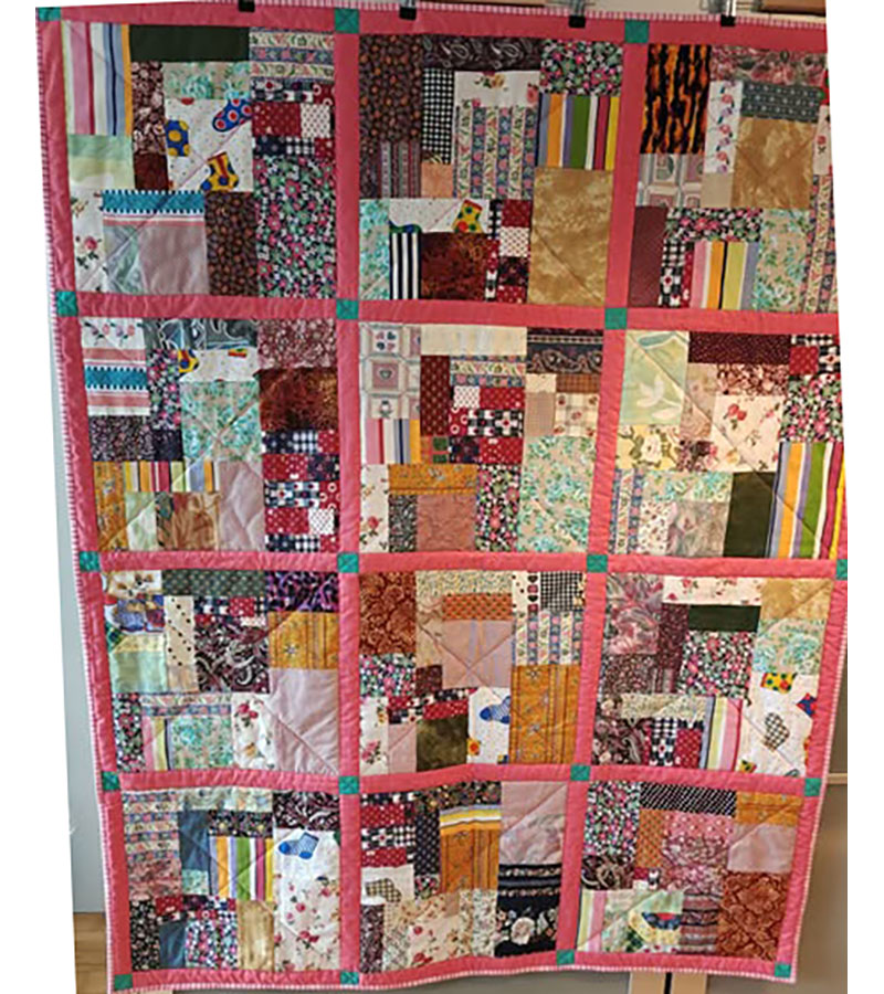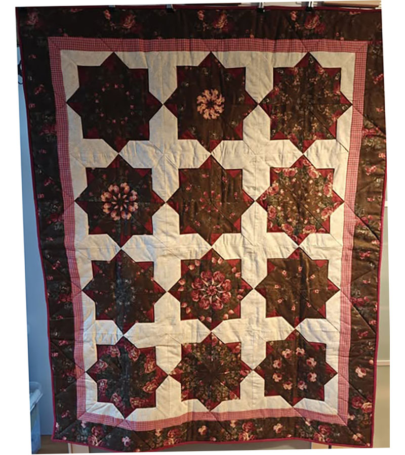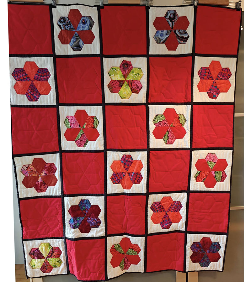 Ane-Marie Ridder, Køge har syet dette fine tæppe, forside stof doneret af Birthe Meng Glador. Syet efter mønster: Jeanneke.com “Frederihe “.