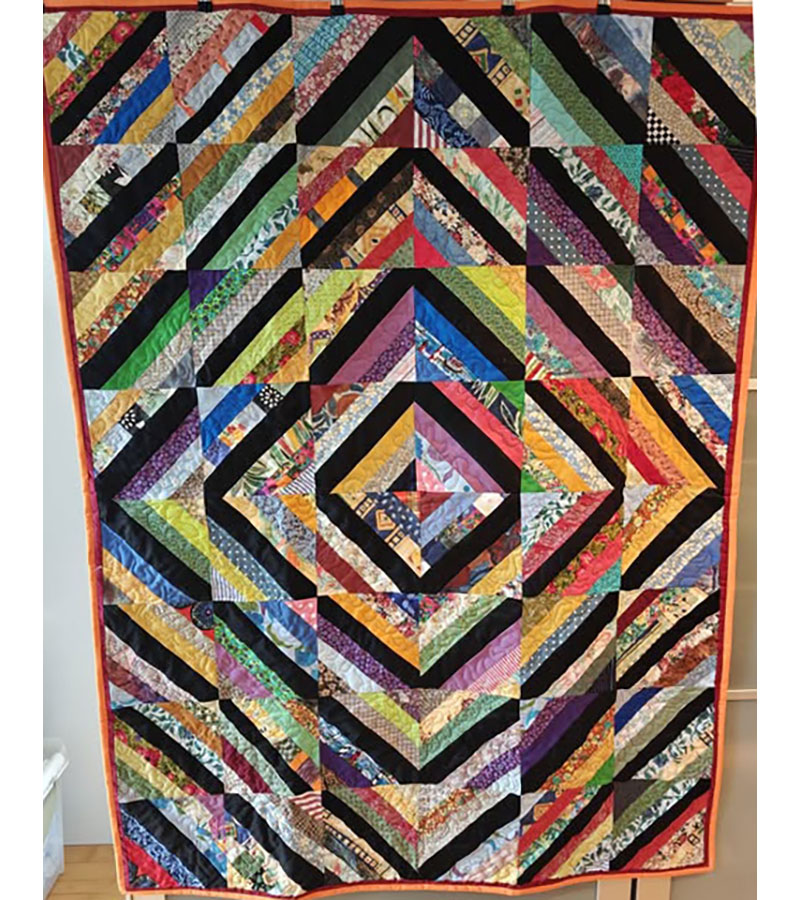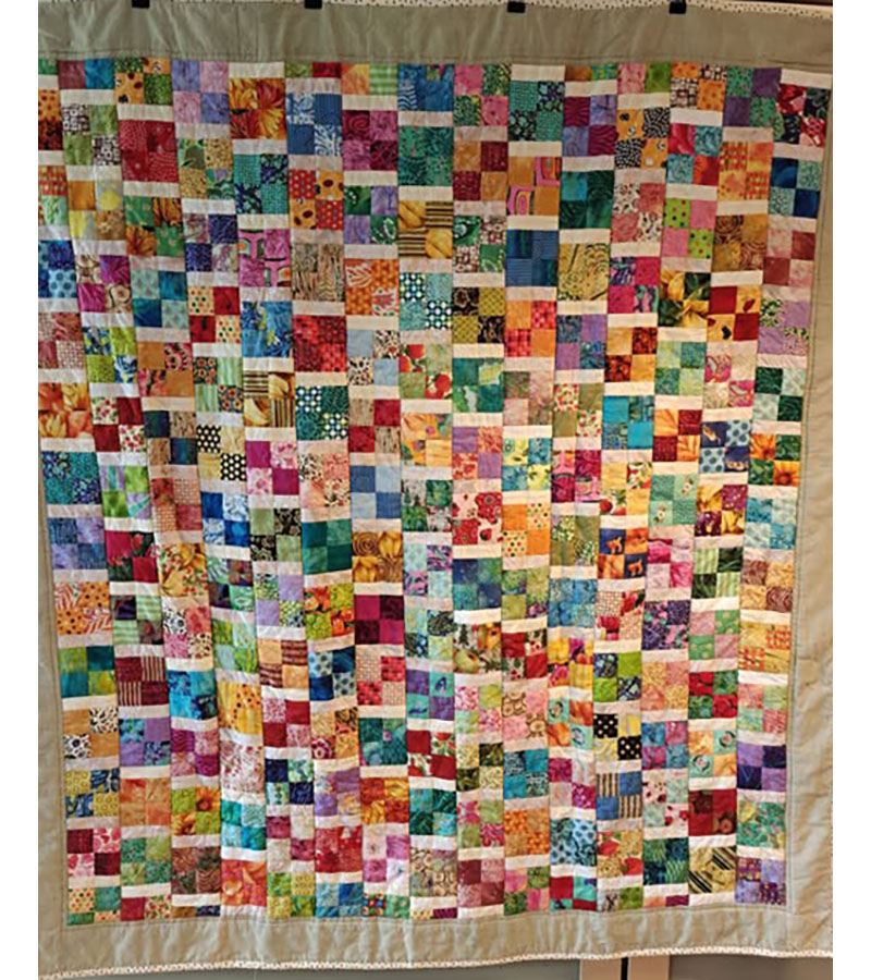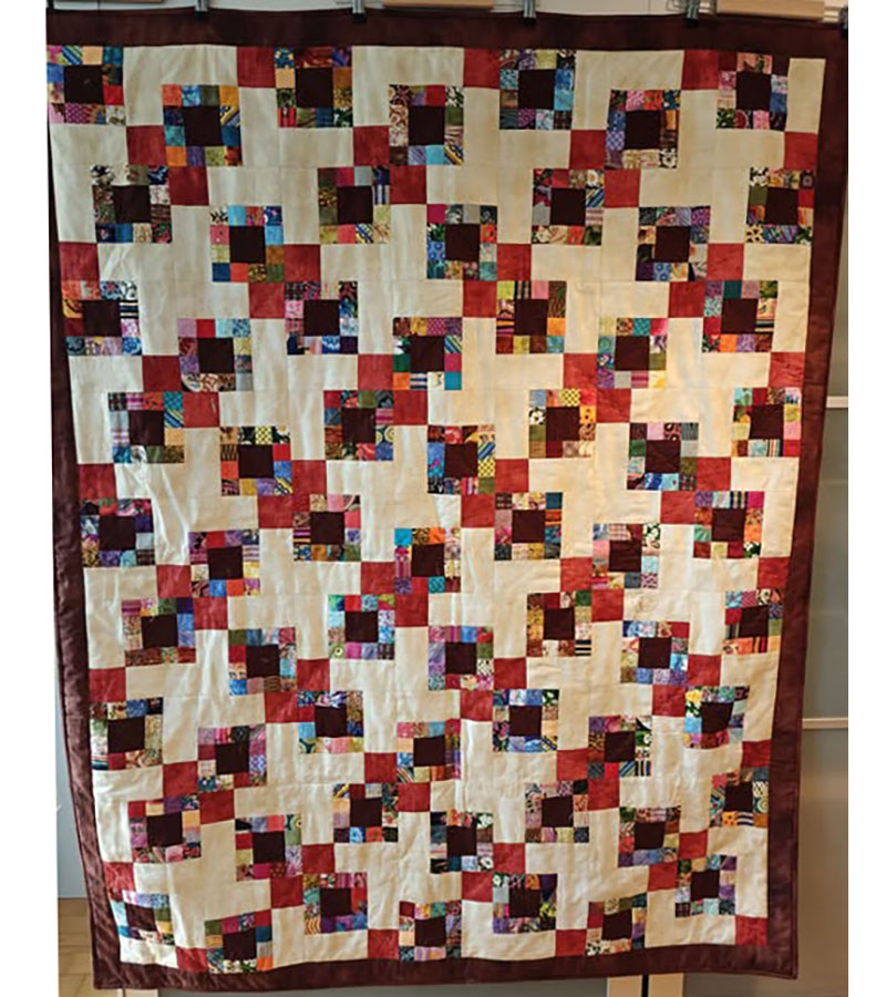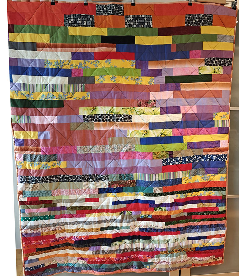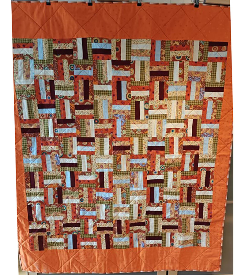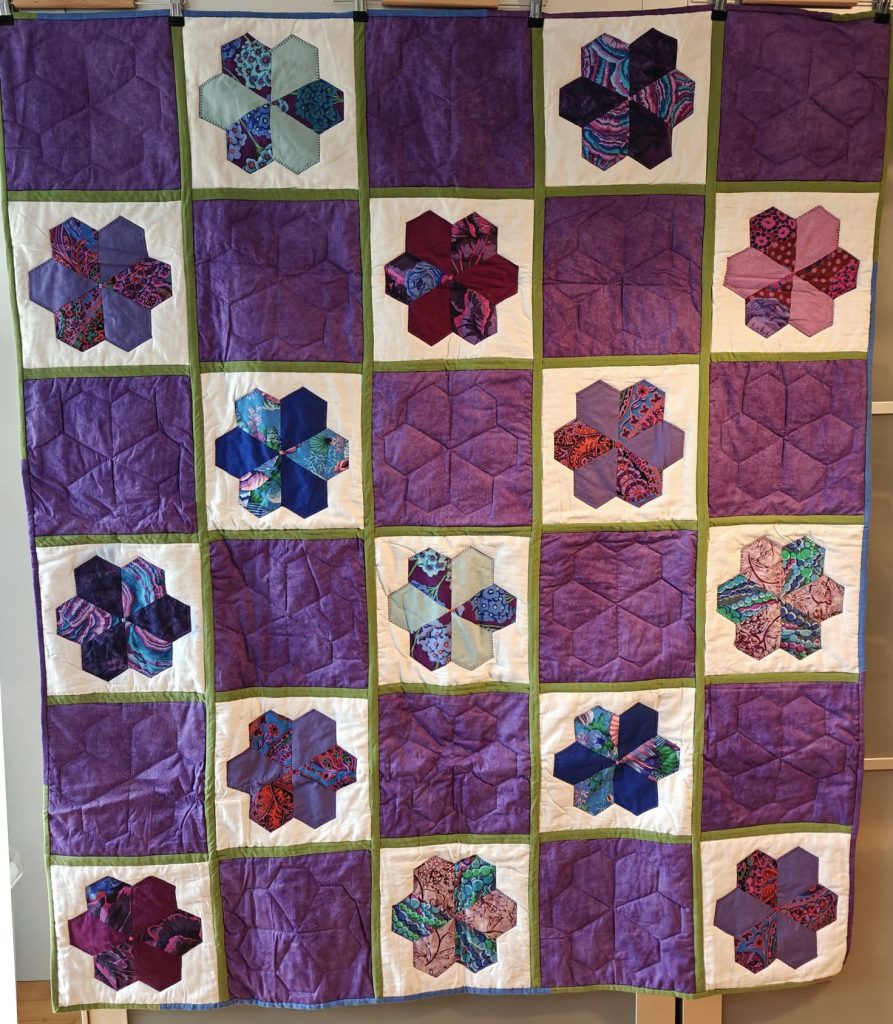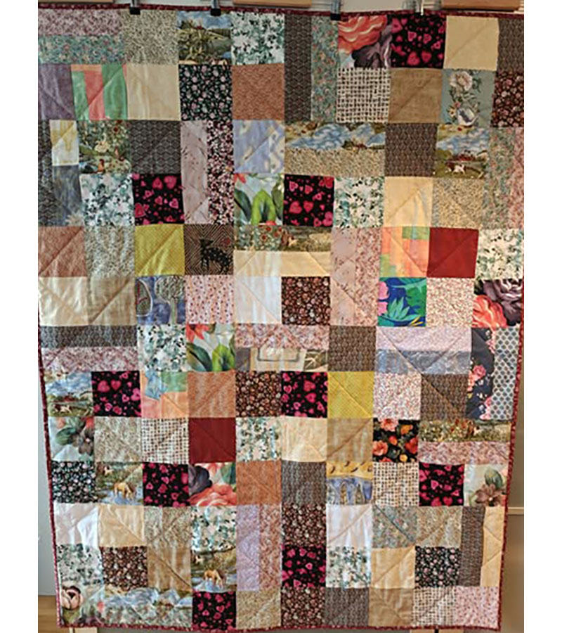Ane-Marie Ridder, Køge har syet dette fine tæppe, forside stof doneret af Birthe Meng Glador. Syet efter mønster: Jeanneke.com “Frederihe “.