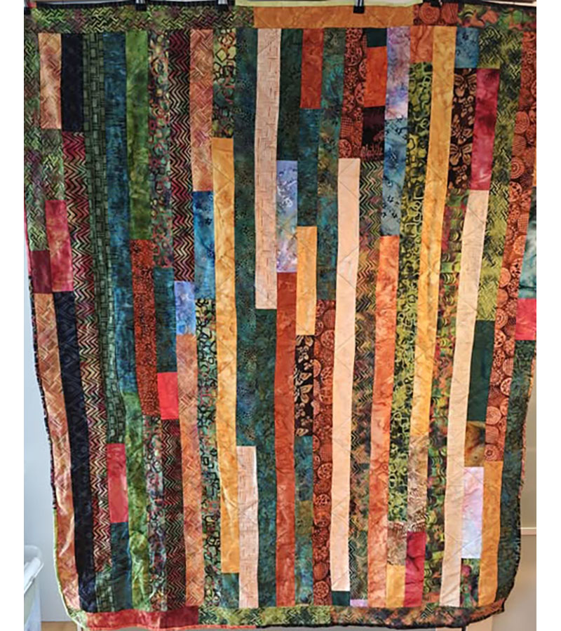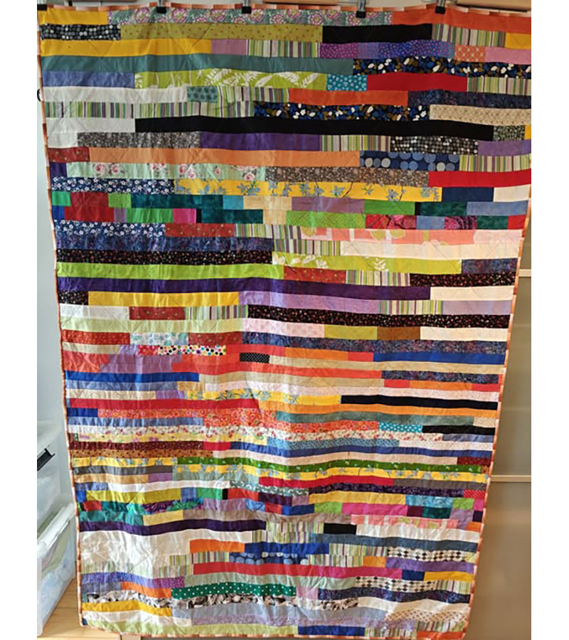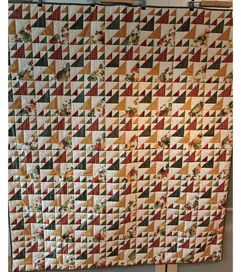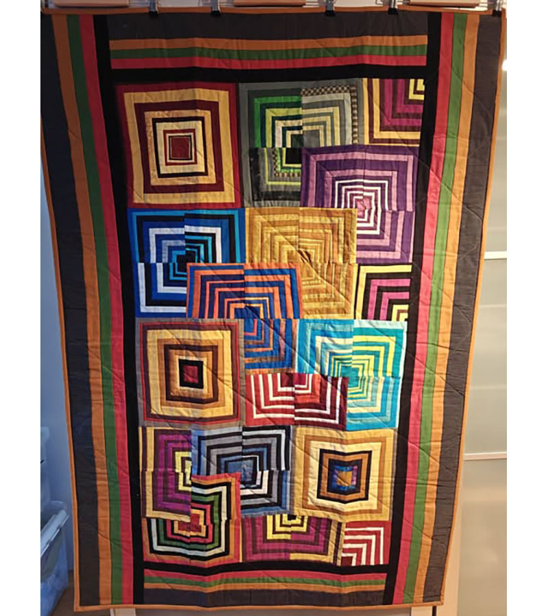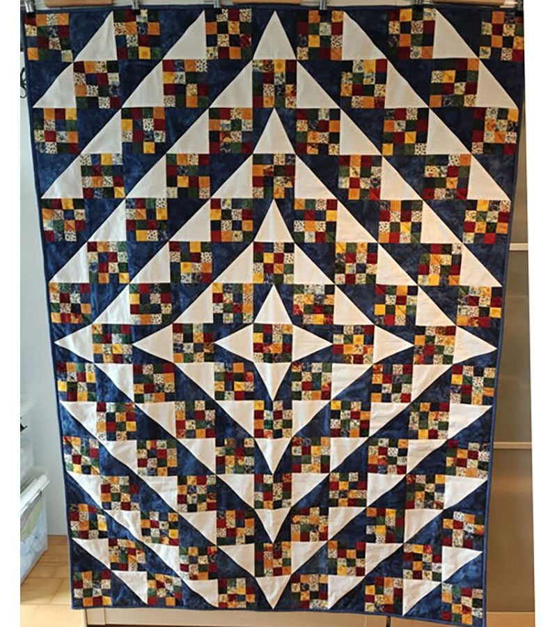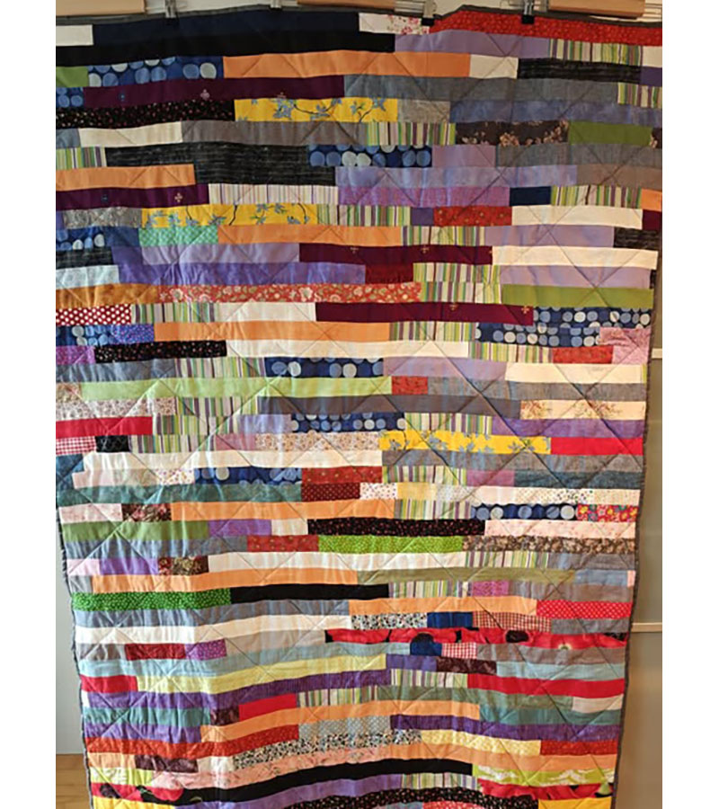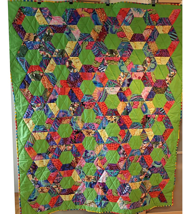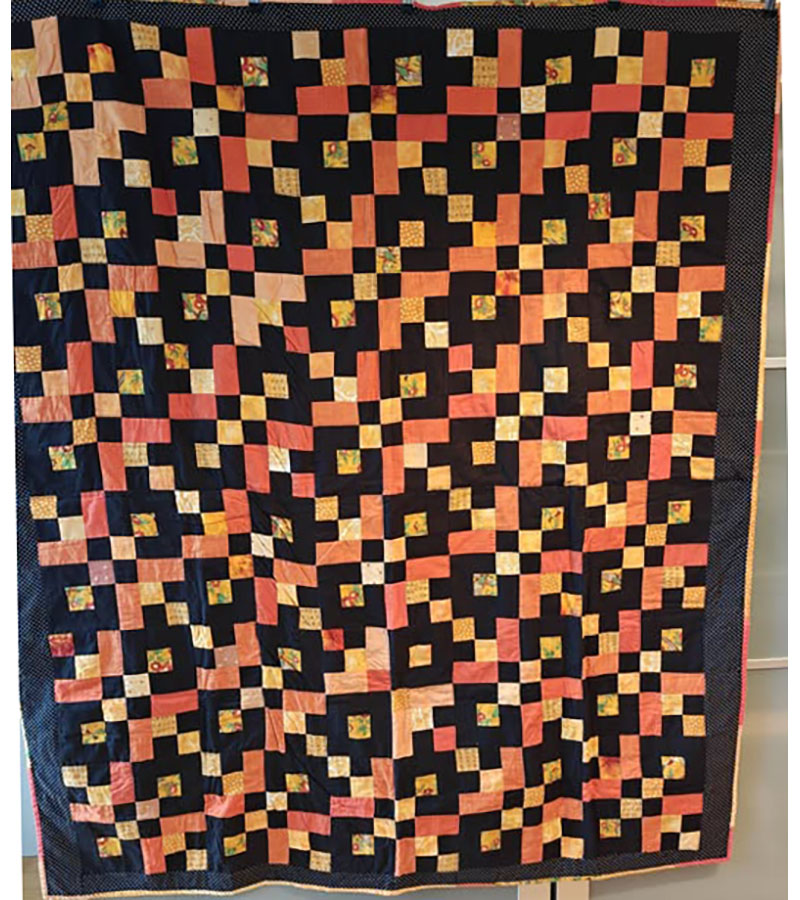 Ane-Marie Ridder, Køge har syet dette fine tæppe, forside stof doneret af Birthe Meng Glador. Syet efter mønster: Jeanneke.com “Frederihe “.