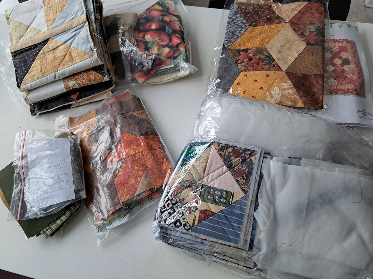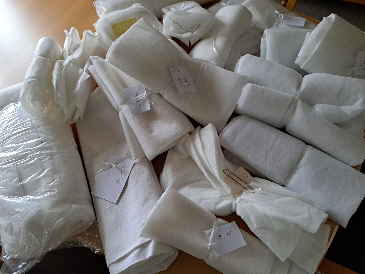 Projekt Puttetæpper har modtaget en flot donation fra Grethe Ladefoged, Vendelbo håndarbejdsgruppe, Hjørring. Det er påbegyndte toppe m.materialer, som er brugt til undervisning, RIGTIG mange ruller sytråd, som kommer fra en nedlukket butik, en rulle tynd volumenvlies og rester af vlies mm. Mange tak.