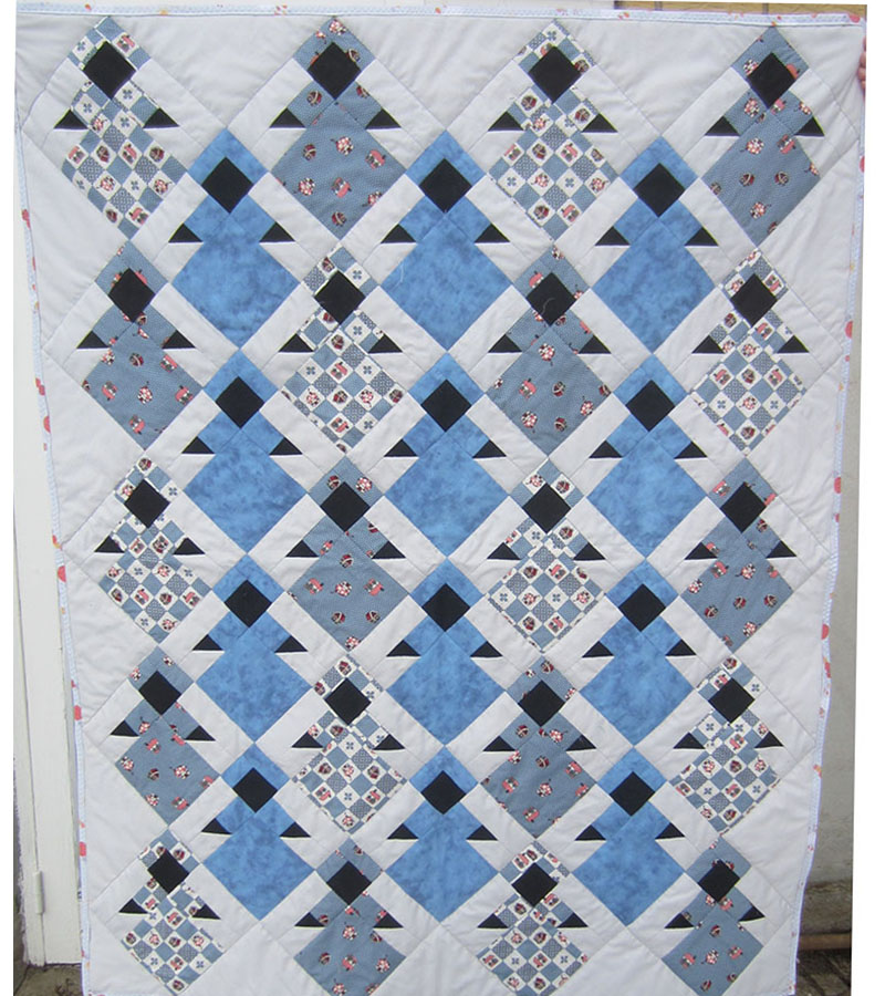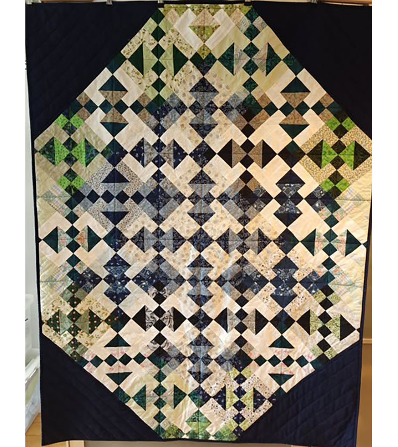 Lena Andersen syede dette tæppe for et par år siden, og det har ligget i dyngen af toppe, der ventede på en monteringstante. Det blev Mette Ebbesen, Tved, der monterede og quiltede tæppet.