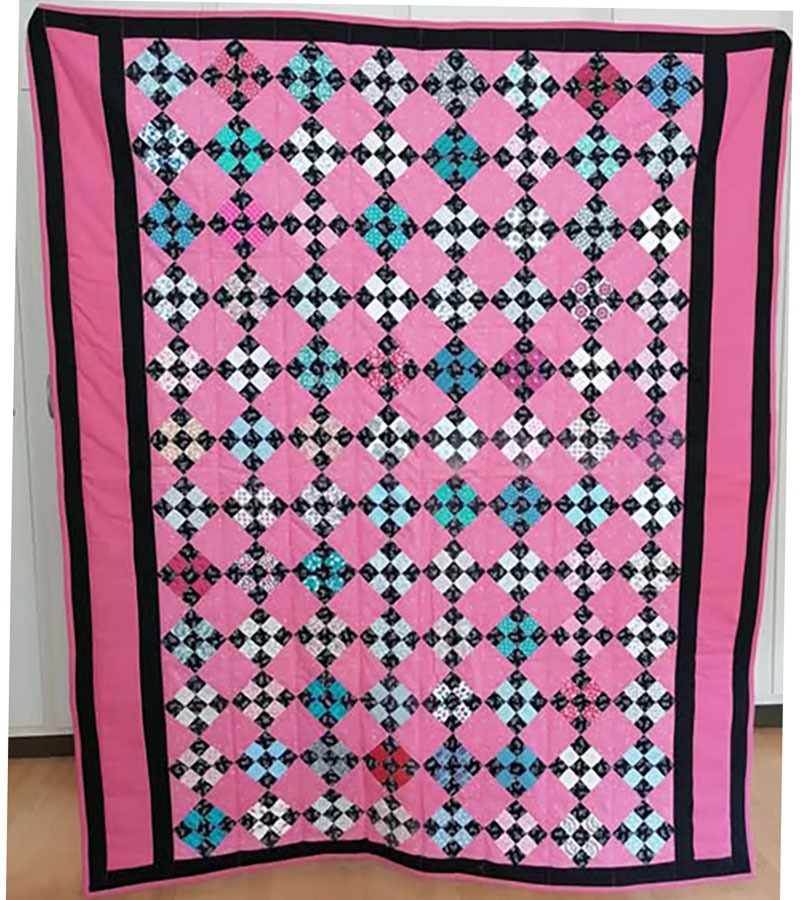 Lisbeth Brink, Rødding, har håndsyet det smukke puttetæppe med African Queen. Karin Holme Frederiksen har monteret og quiltet. Mellemfor er finansieret ved bogsalg, og Ilse Iversen, Ryomgård, har doneret bagsiden.