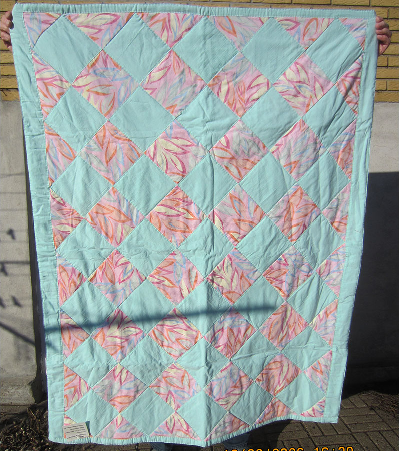 Sarte farver 13. marts 2026 Af projektputte Hanne Brok, Ebeltoft, har maskinsyet og håndquiltet puttetæppet med de sarte farver.